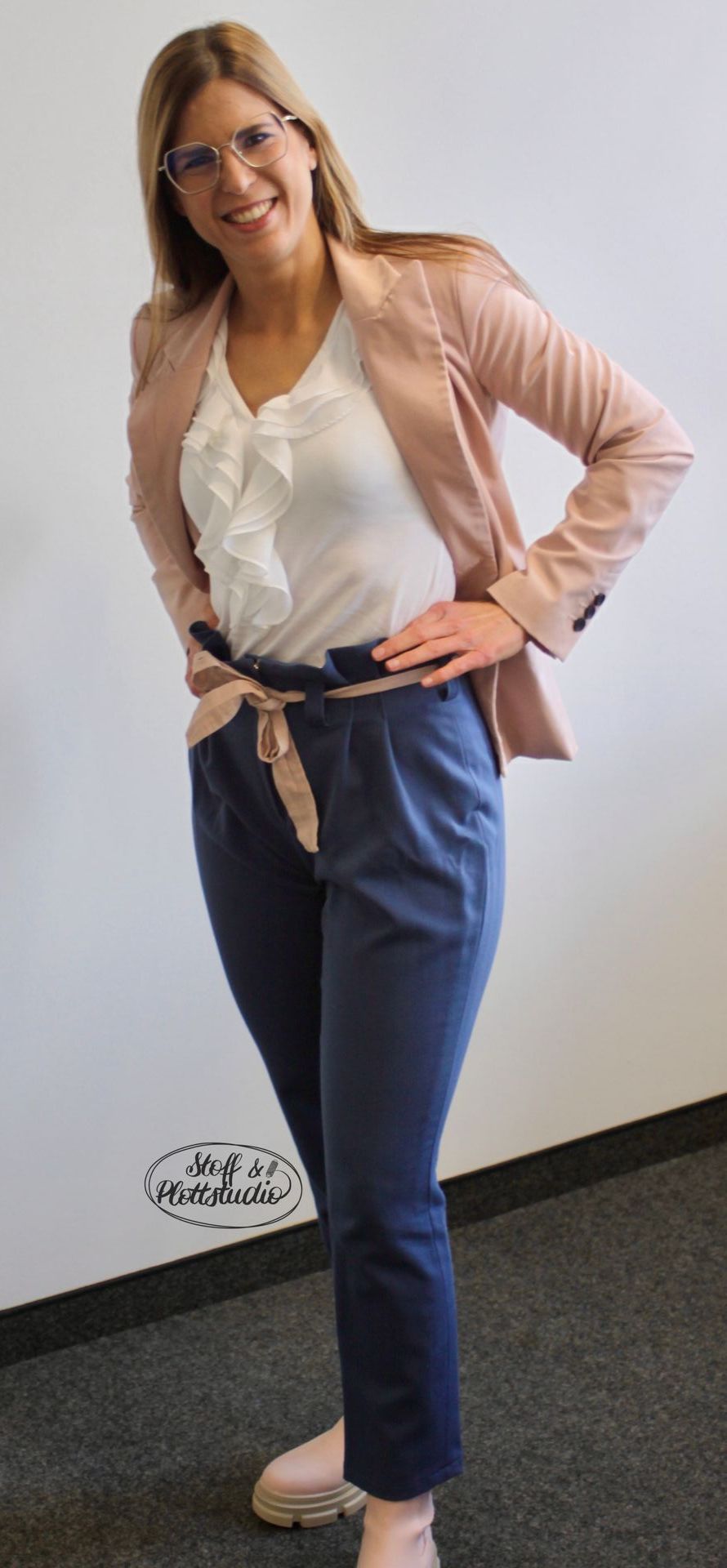 Speziell, dass die Hose sowohl im Sommer als auch im Winter getragen werden kann, begeistert mich, denn wie man sieht, wirkt die Hose auch super schön mit Boots. Meines Erachtens ist die Hose sehr vielseitig einsetzbar, da sie sowohl in der Freizeit als auch im Büro einiges hermacht. Zusätzlich kann man mit der Länge schön spielen. Dadurch, dass der Schnitt aus einem elastischen Stoff ist, lässt sich diese richtig angenehm tragen.