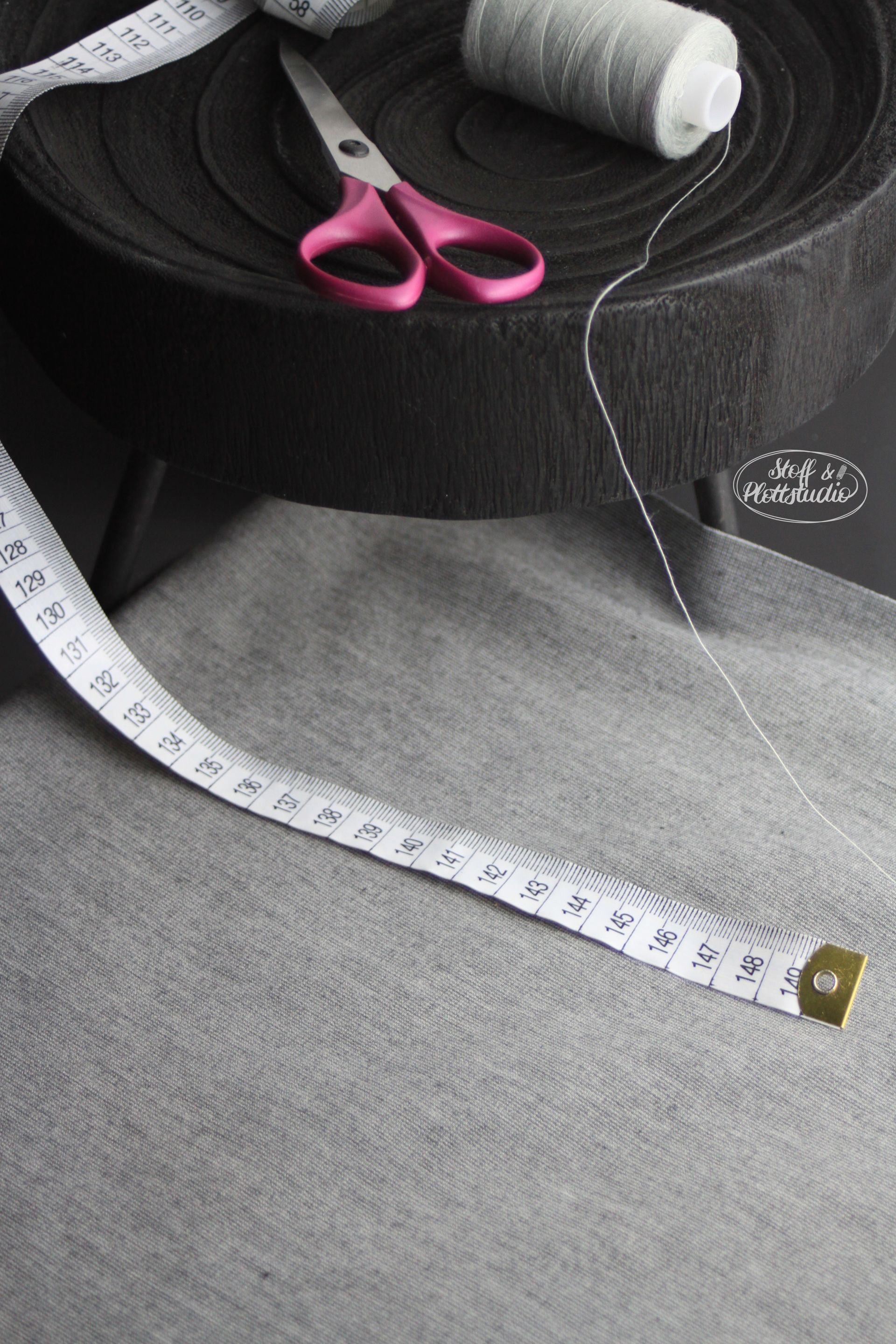 Als Stoff habe ich mich für einen Punta di Roma in hellgrau meliert entschieden sowie einen 2,5 cm breiten Gummi.